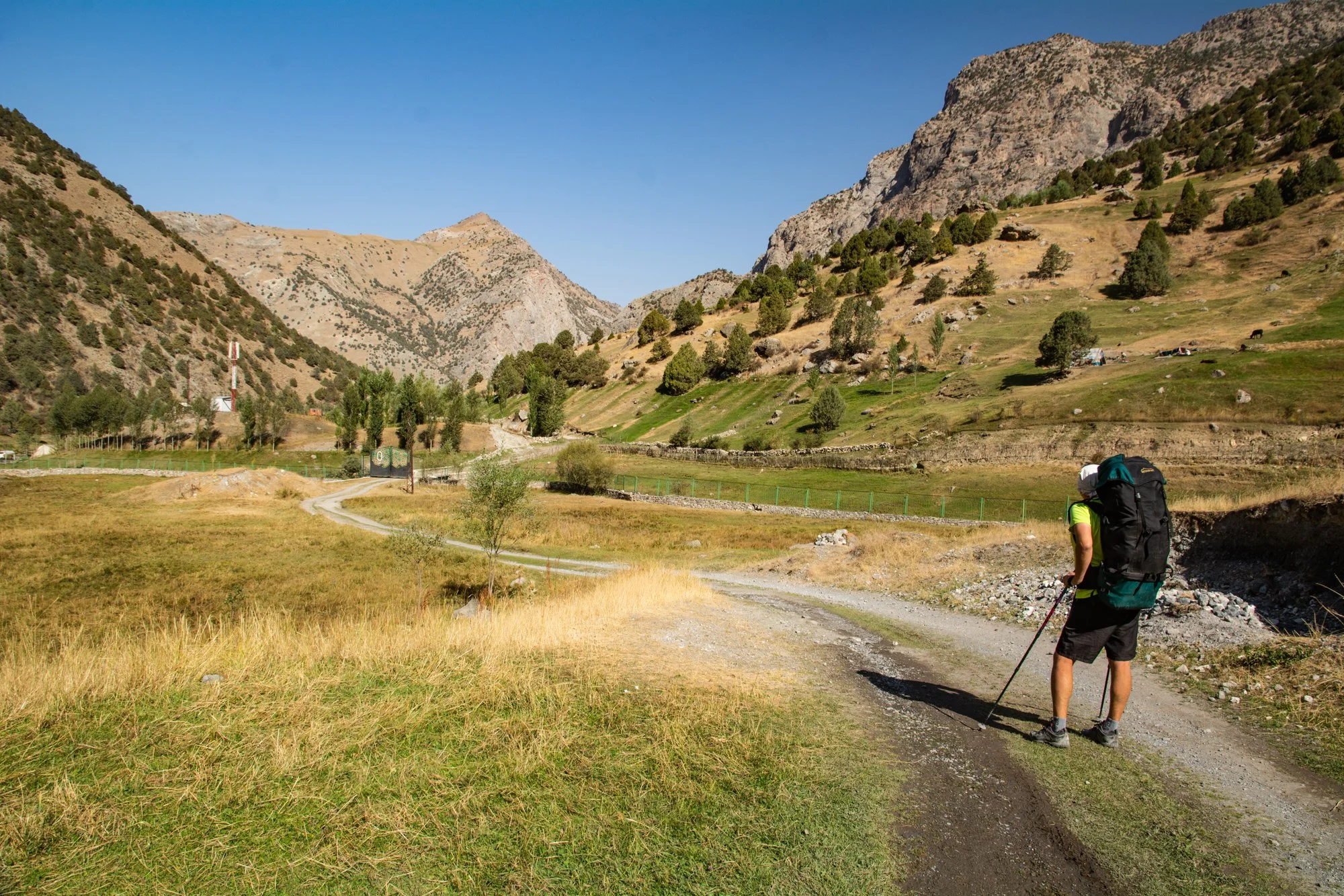 Hned za městem se zvedají štíty pamíro-alajského hřbetu a klikatá silnice často překračuje hranici 2500 metrů nad mořem. Cesta po úplně nové horské dálnici ubíhala rychle. Zhruba po dvou hodinách jízdy jsme dorazili do Sarvody, kde jsme si dali oběd a nakoupili potraviny. Poslední zhruba třicetikilometrový úsek vedl kamenitou cestou divokým horským údolím. Jízda v našem offroad taxi tu byla opravdovým zážitkem, který trval další dvě hodiny.